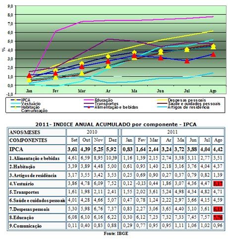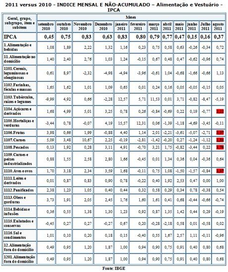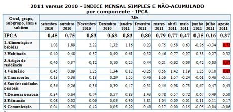Infelizmente, numa analise apenas mensal, os alimentos foram os vilões da inflação, MAS SOMENTE EM AGOSTO DE 2011, boa parte ainda pelos efeitos da entressafra e falta de estocagens.
