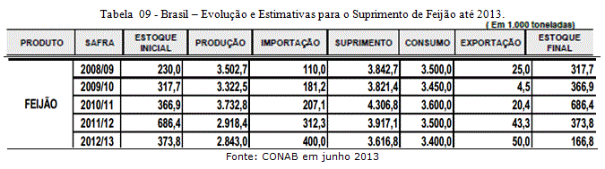 Segundo a CONAB, os estoques totais devem reduzir, progressivamente, para apenas 166,8 mil toneladas no final de dezembro/2013 (ante 373,8 mil no final de 2012) e isto mesmo com o consumo total reduzindo de 3.500 mil t em 2012 para 3.400 mil t em 2013 (ainda igual a 283,3mil t. por mês).