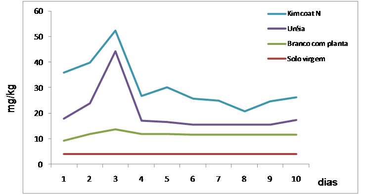 Figura 2. Concentração de Amônio (NH4+) em função do revestimento da ureia. Cabral & Polito, (2010).