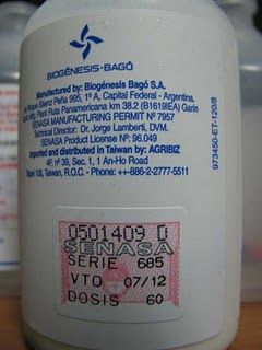 Cabe às autoridades brasileiras, reguladoras da fabricação e venda de produtos veterinários, fazer valer esta resolução e também exigir o cumprimento do compromisso oficial deste fabricante argentino, que, por ocasião do registro no Brasil, se comprometeu a não manipular cepas exóticas ao continente. Sabe-se que esta arriscada prática prossegue com exportações de vacinas com vírus O1 Taiwan à China. Temos, pela segunda vez, informações concretas reveladoras desta perigosa produção para aquele país asiático, o que vem sendo feito há anos e a partida mais recente foi elaborada em outubro de 2010, conforme mostram as fotos exibidas neste blog, obtidas em Taiwan.