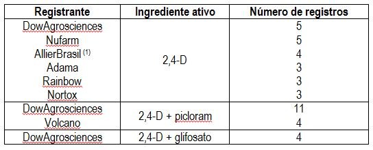 Dentre os 19 titulares de registro de 2,4-D e suas combinações, destacam-se: