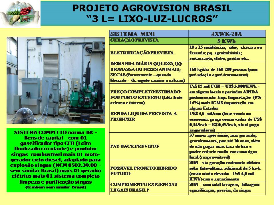 PROJETO AGROVISION BRASIL “3 L = Lixo-Luz-Lucros”
