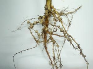 O sistema radicular da soja é constituído de um eixo principal e grande número de raízes secundárias, sendo classificado com um sistema difuso. O comprimento das raízes pode chegar a até 1,80 m. A maior parte delas encontra-se a 15 cm de profundidade.