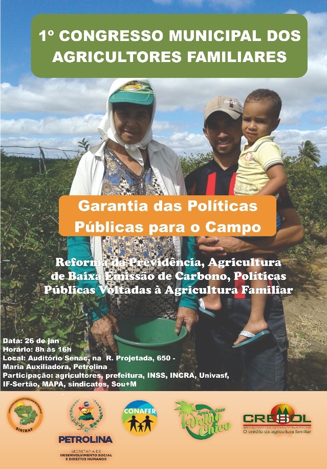 O evento, que é uma realização do Sindicato dos Agricultores Familiares de Petrolina (Sintraf), é inédito para a categoria e discute o tema 'Garantia das Políticas Públicas para o Campo'. Para sua primeira edição, foram escolhidos subtemas atuais e que serão abordados por pessoalidades ligadas diretamente ao assunto.