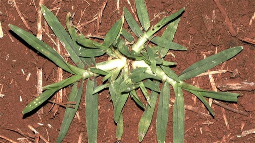 Capim-pé-de-galinha – O capim-pé-de-galinha (Eleusine indica) é uma planta daninha que afeta culturas como soja, milho e algodão. Por apresentar comportamento agressivo, seu manejo tem sido um desafio crescente nas lavouras de soja brasileiras, especialmente na região centro-oeste. A planta daninha também se destaca por sua capacidade de adaptação e resistência a diferentes herbicidas, o que também dificulta seu manejo.