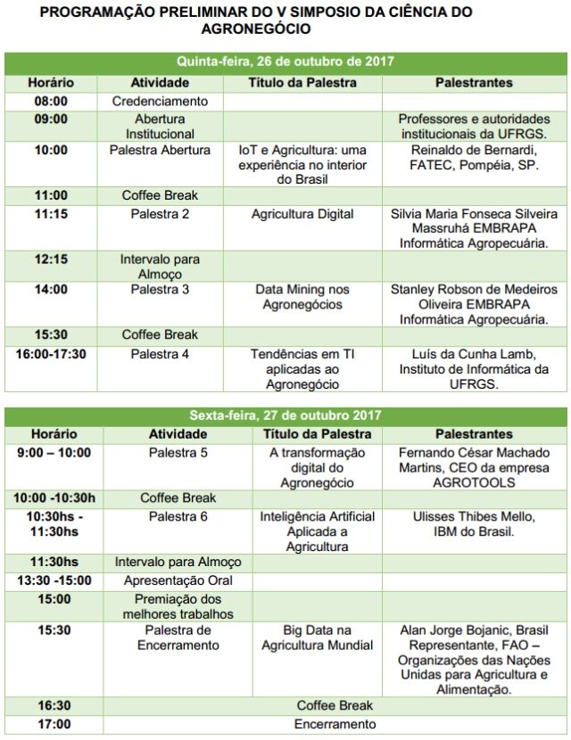 V Simpósio da Ciência dos Agronegócios (UFRGS)-Tema central “Big Data no Agronegócio”