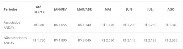 Valores para participar do congresso: