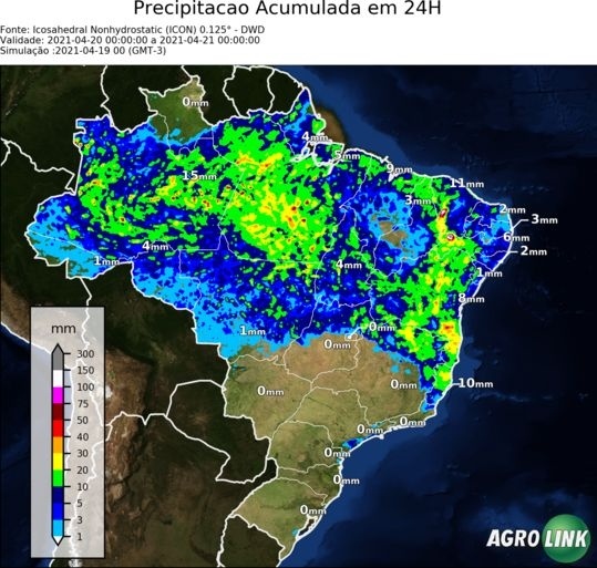 O ciclone no oceano continuará influenciando o tempo de forma significativa até, pelo menos. quarta-feira (21.04), mantendo o corredor de umidade e instabilidades entre o norte de Minas Gerais e Bahia Além disso, não há indicativos de mudanças significativas no padrão das chuvas na região norte no decorrer dos próximos dias, bem como na faixa norte do nordeste brasiliero. Há indicativos de mudança no tempo no centro-sul do Brasil, entre os dias 24 e 25.