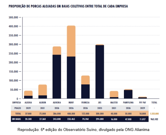 Nesse cenário, a 6ª edição do Observatório Suíno, relatório elaborado pela Alianima, consolida-se como instrumento de monitoramento e avaliação do setor. O documento utiliza questionários distintos para produtores e compradores, como redes de restaurantes e supermercados. Segundo Maria Fernanda Martin, zootecnista e gerente de relações corporativas e bem-estar animal da Alianima, o objetivo do levantamento é “identificar gargalos, reconhecer boas práticas e estimular o avanço contínuo do setor em direção a sistemas mais sustentáveis”. Ela afirmou ainda que “neste ano, observamos um avanço na gestação coletiva por parte da maioria dos fornecedores, assim como nos compromissos públicos com a adoção do sistema cobre e solta para novas instalações”.