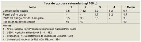 Por que é mito? O raciocínio é o mesmo do teor de colesterol: há cortes suínos com mais gordura saturada e outros mais magros. “As carnes, de uma forma geral, apresentam gordura saturada porque se trata de um composto mais presente em gorduras de origem animal do que nos óleos, que são gorduras de origem vegetal. Além disso, a gordura também é um composto necessário ao organismo humano”, explica Coser. Veja a comparação: