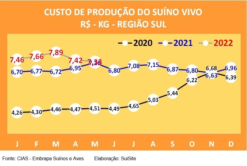 O levantamento da Embrapa através de sua Central de Inteligência de Suínos e Aves, aponta que o custo de produção do suíno vivo na região Sul apresentou nova retração em maio último, motivado, principalmente, pela retração no preço da ração.