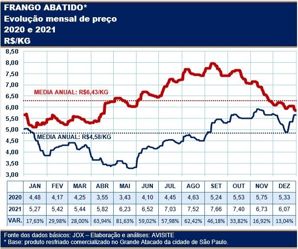 Desempenho do frango abatido em dezembro e no decorrer de 2021