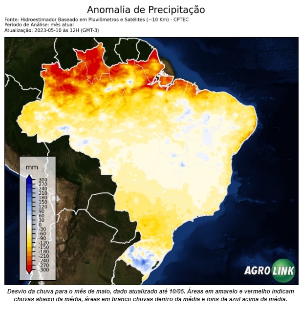 O padrão de chuvas abaixo da média na região norte é indicado em todo esse período mencionado, principalmente no extremo norte do Brasil, como no norte do Amazonas, Roraima, Amapá e norte do Pará.