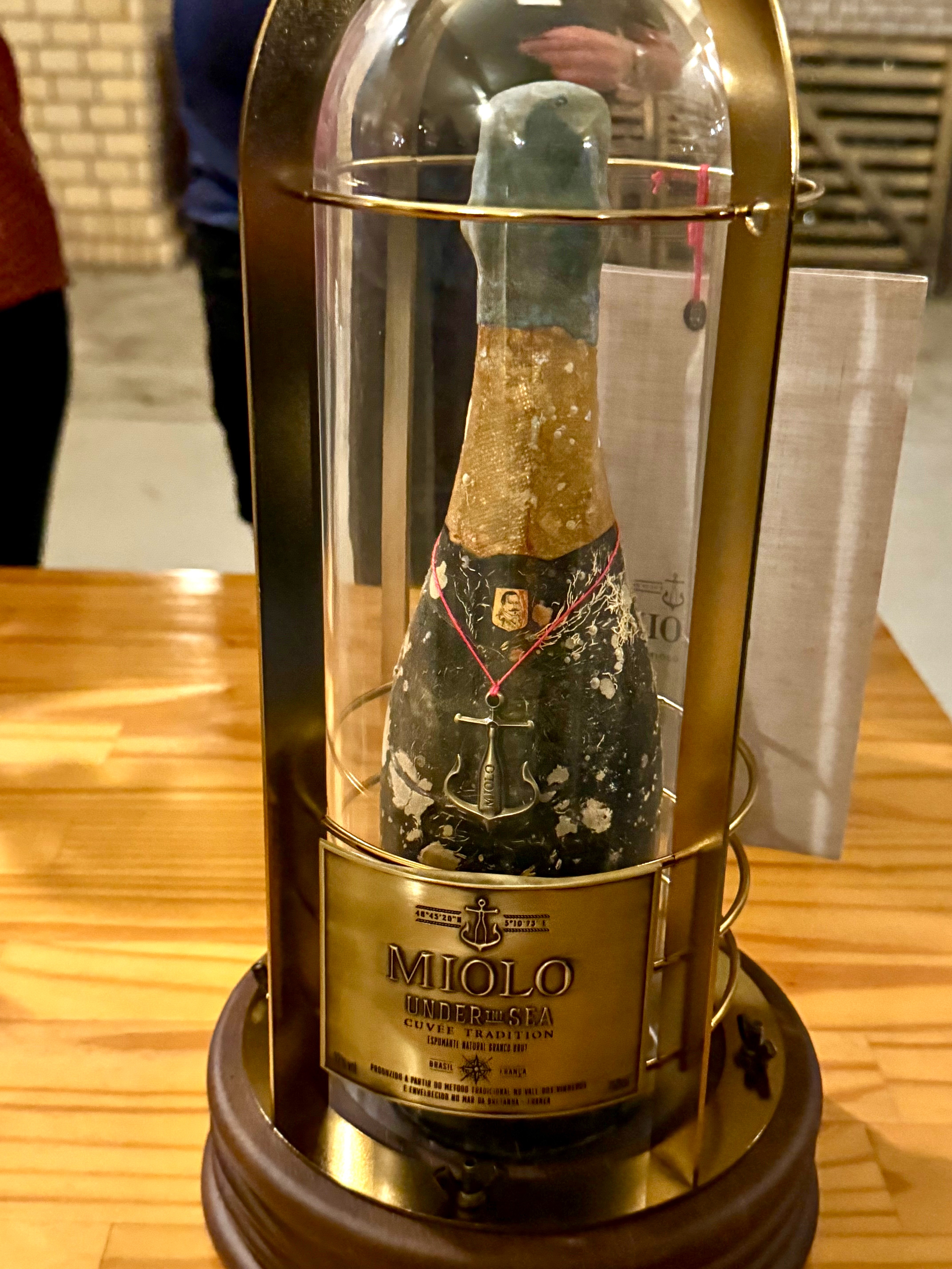 O grande destaque da noite foi a degustação do Espumante Miolo Cuvée Under The Sea, elaborado com as uvas Chardonnay e Pinot Noir pelo método tradicional. O espumante foi envelhecido em condições únicas no mar, aproveitando a escuridão total, temperaturas constantes entre 10°C e 14°C, alta pressão da água e proteção contra ondulações fortes, características ideais para o processo de maturação.