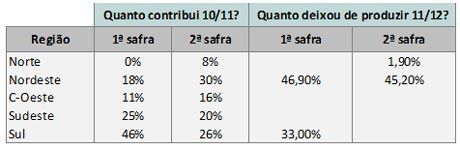 De acordo com a tabela 1 é possível entender o que elevou os preços aos patamares destes últimos meses: importantes regiões produtoras como a região Sul e Nordeste com significativas reduções de produção.