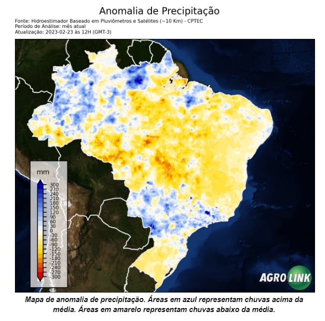 Entretanto, é importante ressaltar que, mesmo com a mudança do padrão climático, os impactos serão refletidos em pelo menos dois meses. Portanto, ainda para o final desta safra de verão 2022/23 o comportamento das chuvas seguem com as características do La-Niña.