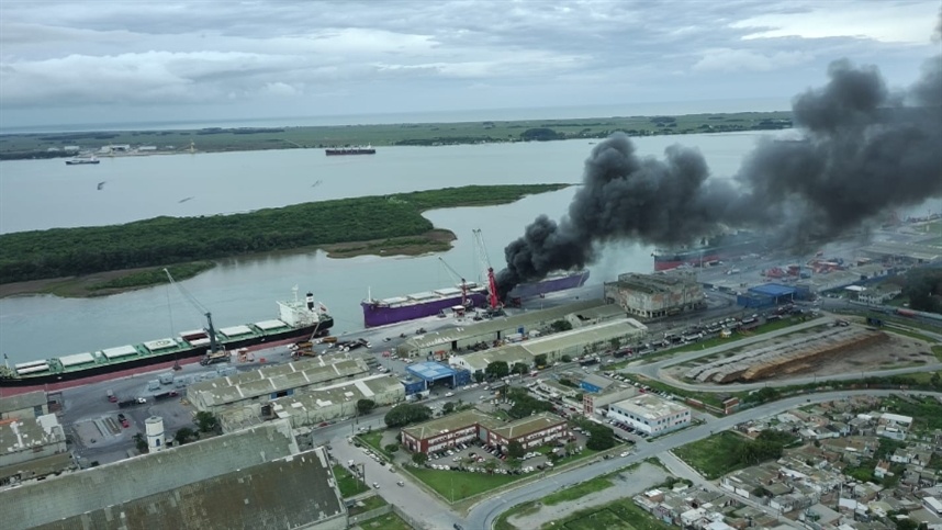 Fogo atingiu equipamento durante descarga de navio; área foi isolada por segurança