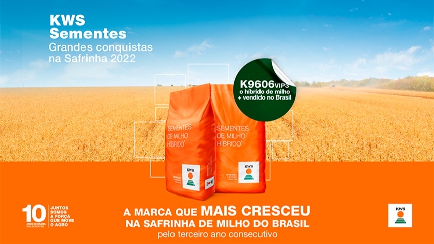 No ano em que completou uma década de atuação no Brasil, a multinacional alemã, KWS Sementes, é reconhecida, pelo terceiro ano consecutivo, como a empresa de sementes de milho que mais cresceu na safrinha. E as comemorações da KWS não param por ai, além do reconhecimendo mencionado acima, a empresa também teve o híbrido mais vendido na safrinha, o K9606 VIP3.