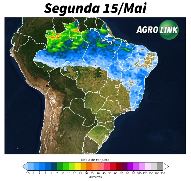 No decorrer desta segunda, uma massa de ar seco deve avançar pelo sul da região, o que pode limitar a ocorrência de chuvas nos estados do Acre, Rondônia, sul do Amazonas e sul do Pará, embora ainda exista uma pequena possibilidade de pancadas isoladas nestes setores. Por outro lado, Roraima e o norte do Amazonas deverão enfrentar chuvas intensas. Já no estado do Tocantins as chuvas podem vir e ser positivas para as lavouras de algodão da região. Além disso, o calor será forte, especialmente em áreas do sul da região norte.