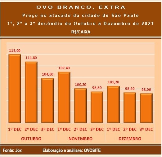 Ovos: sensível retrocesso no preço médio por decêndios no último trimestre do ano