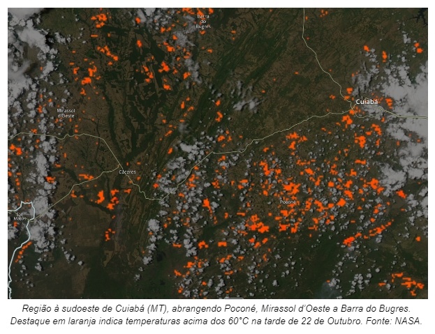 Gabriel ainda ressalta que, existe um fator de preocupação nesta safra, especialmente em Mato Grosso, Goiás e norte do Mato Grosso do Sul onde as chuvas estão ocorrendo de forma extremamente irregular, aliadas à uma sequência de dias com temperaturas máximas acima dos 40°C neste mês. Além disso, o monitoramento via satélite, também indica temperaturas acima dos 60°C na superfície, o que impede uma recuperação hídrica mais efetiva por efeitos de evaporação.