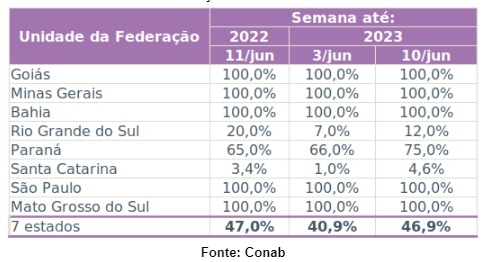Informações obtidas no boletim de Progresso de Safra da Companhia Nacional de Abastecimento (Conab)