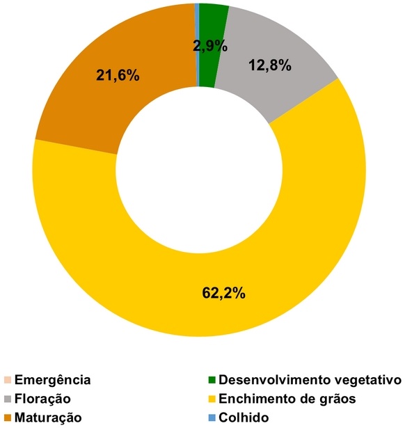 Em Goiás, a ausência de chuvas tem prejudicado o desenvolvimento das áreas de plantio tardio, situação que requer atenção devido à sua influência direta na formação e enchimento dos grãos.