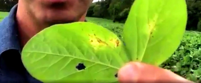 Circulou neste final de semana um vídeo gravado pelo Engenheiro Agrônomo, José de Freitas, gravado em Itaberá, no interior de São Paulo. Na última sexta-feira (4) ele identificou um foco de Ferrugem Asiática (Phakopsora Pachyrhizi) em borda de uma lavoura comercial de soja.