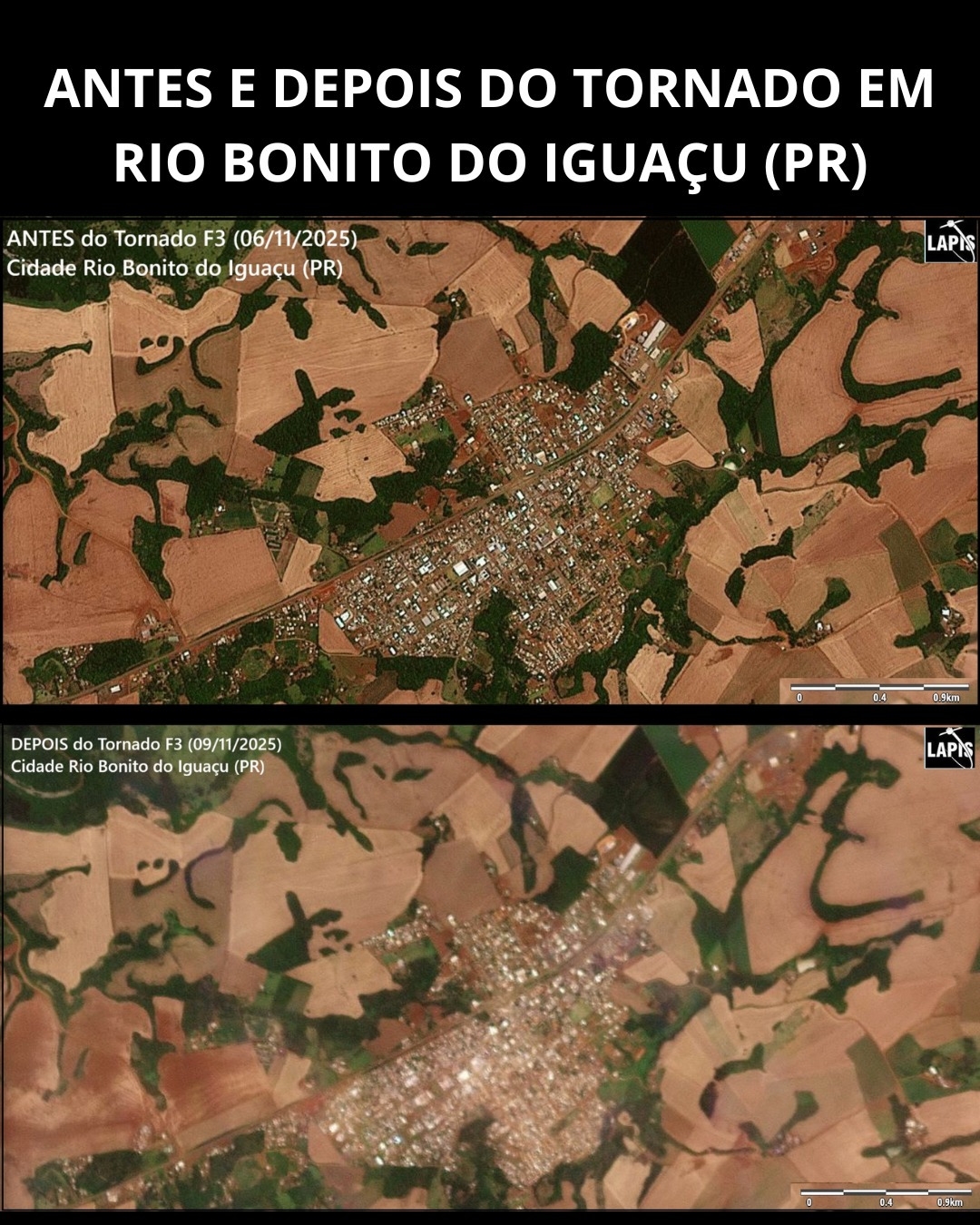 O final de semana dos dias 7 e 8 de novembro de 2025 entrou para a história da meteorologia brasileira com a ocorrência de múltiplos tornados entre o sudoeste do Paraná e o oeste de Santa Catarina. Segundo Gabriel Rodrigues, meteorologista do Portal Agrolink, trata-se de um dos episódios mais destrutivos já registrados no país, refletindo a crescente frequência e intensidade de eventos extremos associados às mudanças climáticas.