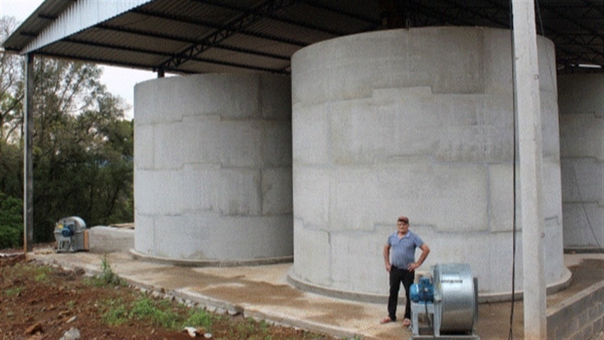Felipe Giacomini, produtor na comunidade São Carlos, construiu há cerca de três anos um silo com capacidade de 1.600 sacos, suficiente para armazenar toda a produção de grãos da sua propriedade. A produção é utilizada para a alimentação do rebanho leiteiro e, antes, ele precisava depositar os grãos em um cerealista e pagar o frete duas vezes, uma para entrega e outra para retirada dos grãos quando precisava usar. Segundo ele, para manejar o silo é preciso cuidar principalmente a umidade e evitar a ocorrência de carunchos e, somente com a economia com os fretes e os descontos com impurezas, que agora são usadas na propriedade, o investimento já se paga.
