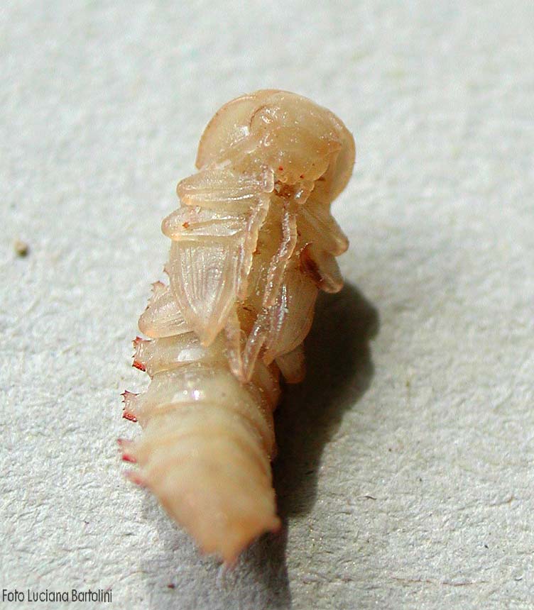 Os adultos apresentam coloração castanho escura, brilhante e as larvas são amareladas, com anéis escuros e segmentados. As puás são branco amareladas.