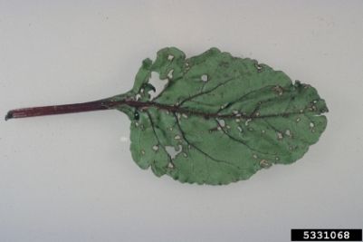 Danos: O sintoma típico da doença são lesões necróticas nas folhas. A doença começa a se manifestar nas folhas mais velhas e inferiores como diminutas manchas marrons, rodeadas por tecido clorótico, evoluindo para manchas irregulares ou angulares, variando a coloração de canela a marrom. As lesões totalmente desenvolvidas são ligeiramente deprimidas e necróticas. Os sintomas se dispersam progressivamente para a parte superior da planta, podendo ocupar áreas extensas nas folhas devido à coalescência das lesões.