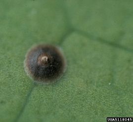 Escama cabeça de prego (Chrysomphalus ficus) Culturas Afetadas: Citros, Rosa