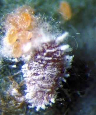 Danos: O inseto suga continuamente a seiva da planta. Devido à sucção de seiva causada por estes insetos, a planta definha, podendo, em alguns casos, morrer. Além da sucção de seiva, os insetos expelem um líquido açucarado que atrai formigas e provoca o aparecimento de fumagina, que é grandemente prejudicial à fotossíntese.