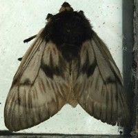 O inseto é uma mariposa de 70 mm de envergadura, corpo robusto, de cor preta e rósea e asas brancas com a base escura. Suas lagartas são brancas, com pelos urticantes de coloração castanha avermelhada.