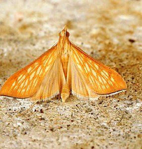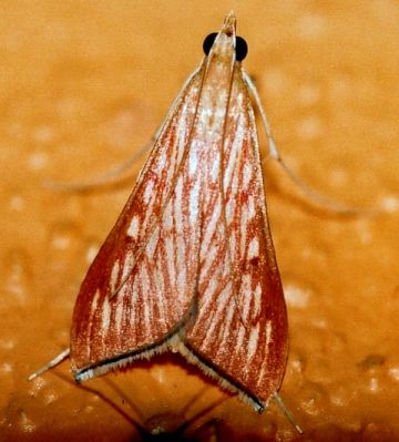 Biologia: O inseto adulto é uma pequena mariposa de hábitos noturnos, com cerca de 15 mm de envergadura e 8 mm de largura.