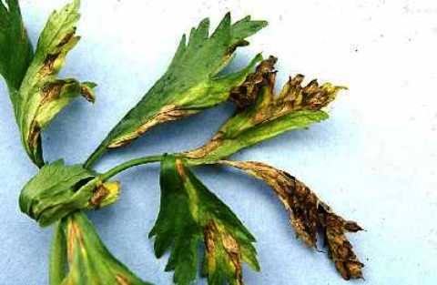 Controle: A maioria das cultivares de aipo são suscetíveis a Cercospora apii, no entanto há algumas cultivares tolerantes, entre elas, Emerson Pascal, June-Belle e Aerlibelle, todas de origem canadense. A principal medida de controle é o uso de sementes limpas e adequadamente tratadas, assim como mudas também sadias, produzidas sob estrito controle fitossanitário. Após a colheita, os restos da cultura infectados devem ser retirados do campo e queimados. As sementes devem ser tratadas com fungicidas protetores antes de serem plantadas. Realizar pulverizações com fungicidas protetores nas sementeiras.
