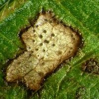 Danos: O fungo provoca a formação de manchas necróticas, de coloração parda. As lesões são pequenas, com 1 a 3 mm de diâmetro, e, posteriormente, o número de manchas pode aumentar, ocorrendo, consequentemente, a junção das mesmas. No centro da lesão ocorre o desenvolvimento das estruturas do fungo (picnídios), na forma de pontuações pretas e salientes.