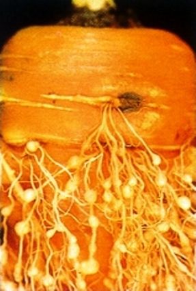 Meloidogyne hapla alimenta-se do sistema radicular, provocando a murcha da planta nos horários mais quentes do dia. As principais hospedeiras desses organismos são as culturas agronômicas importantes, como amendoim, berinjela, cenoura, ervilha, fumo, tomate e muitas plantas daninhas.