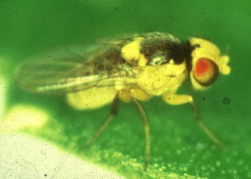 Mosca minadora, larva minadora (Liriomyza sativae) Culturas Afetadas: Batata, Berinjela, Melancia, Melão, Pimentão, Tomate