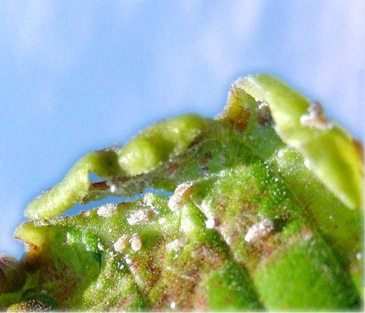 Danos - Em altas densidades populacionais podem ser nocivos, pois provocam o depauperamento das plantas pela ação tóxica da saliva injetada durante sua alimentação. É sintoma característico do psilídeo o enrolamento dos bordos do limbo foliar, onde se encontram colônias de ninfas. Inicialmente, esses bordos se apresentam de coloração amarelada (áreas cloróticas) ou avermelhada e, posteriormente, com aspecto necrosado, podendo ocorrer queda das folhas, fazendo com que haja redução da área foliar e, conseqüentemente, comprometimento na produção.