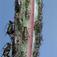 Danos: Atacam principalmente os brotos novos e tenros, onde sugam a seiva, causando enrolamento das folhas e atrofiamento dos brotos, prejudicando sensivelmente as plantas. Quando a infestação é intensa, atacam, também, as inflorescências. Podem promover o aparecimento de fumagina, em função do líquido açucarado que expelem.