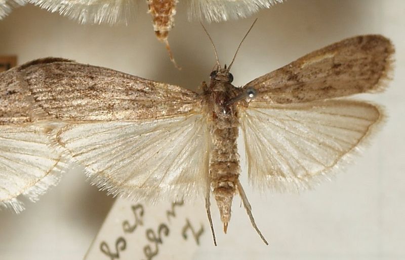 São mariposas de coloração parda, apresentando, em média, 20 mm de envergadura. As asas anteriores são longas, estreitas, acinzentadas, com pontos e manchas transversais mais escuras. As lagartas tem coloração branco rosada, com cabeça e pernas acastanhadas.