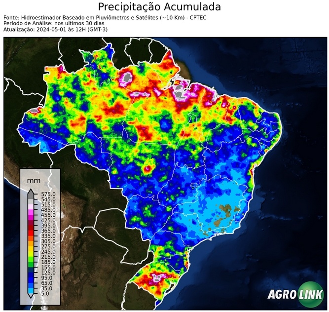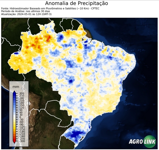 Mesmo assim, analisando o comportamento das chuvas, boa parte do país teve registros acima da média histórica, de acordo com com os dados do hidroestimador, embora esses bolsões de chuvas acima da média ocorreram de forma irregular e mal distribuídas, com destaque para os estados do rio Grande do Sul, meio norte de Mato Grosso, Pará, Tocantins, Maranhão, Piauí e Bahia.