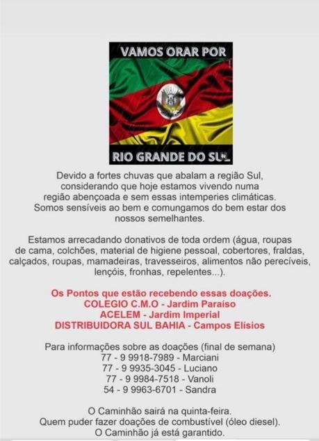 Os valores arrecadados serão destinados à compra de alimentos não perecíveis, itens de higiene pessoal, roupas, cobertores e outros produtos essenciais para as famílias desabrigadas. Sua contribuição fará toda a diferença na vida daqueles que mais precisam neste momento de adversidade.